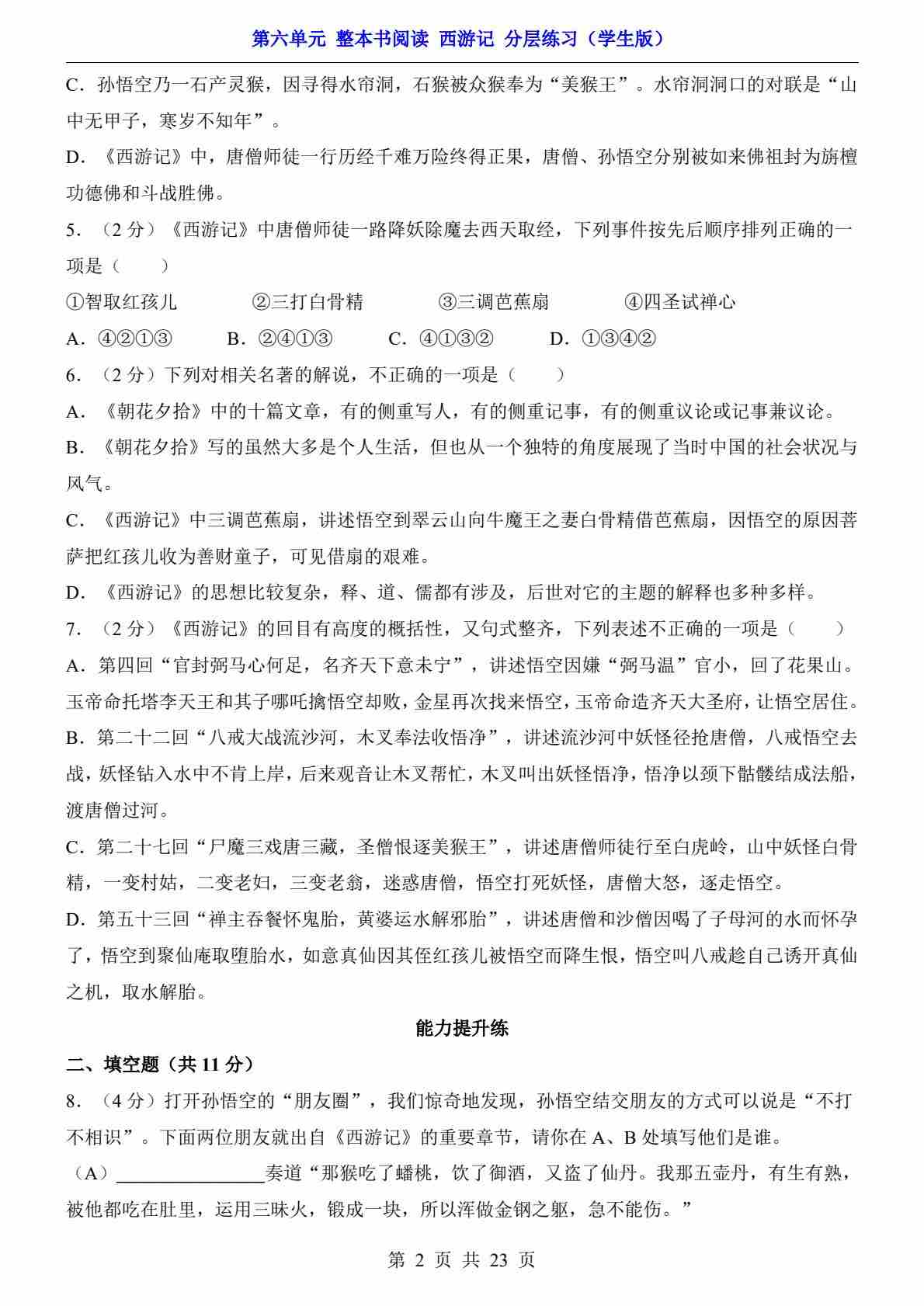 首页 > 全部 > 分层练习 > 第六单元 整本书阅读 西游记(分层练习)