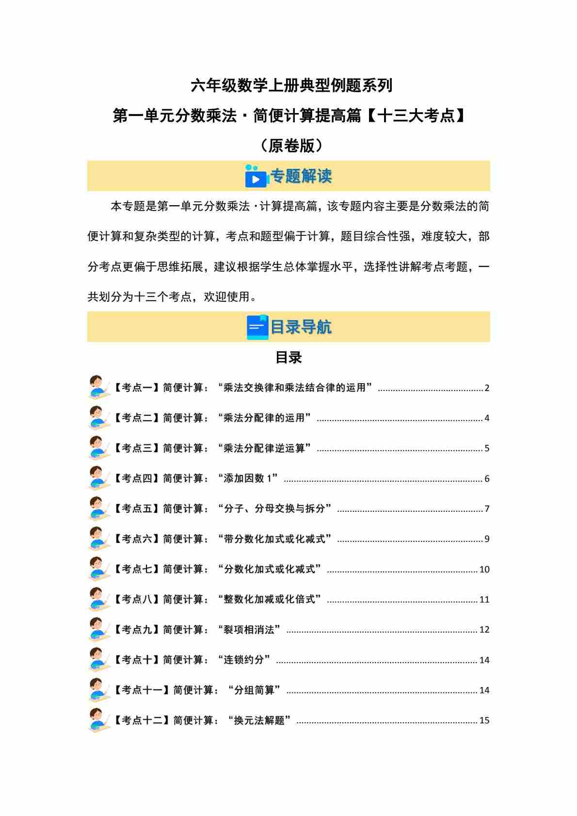 首页 > 全部 > 专项练习 > 六上人教版数学【第一单元分数乘法·计算提高篇(十三大考点)典型例题系列(原卷版)】