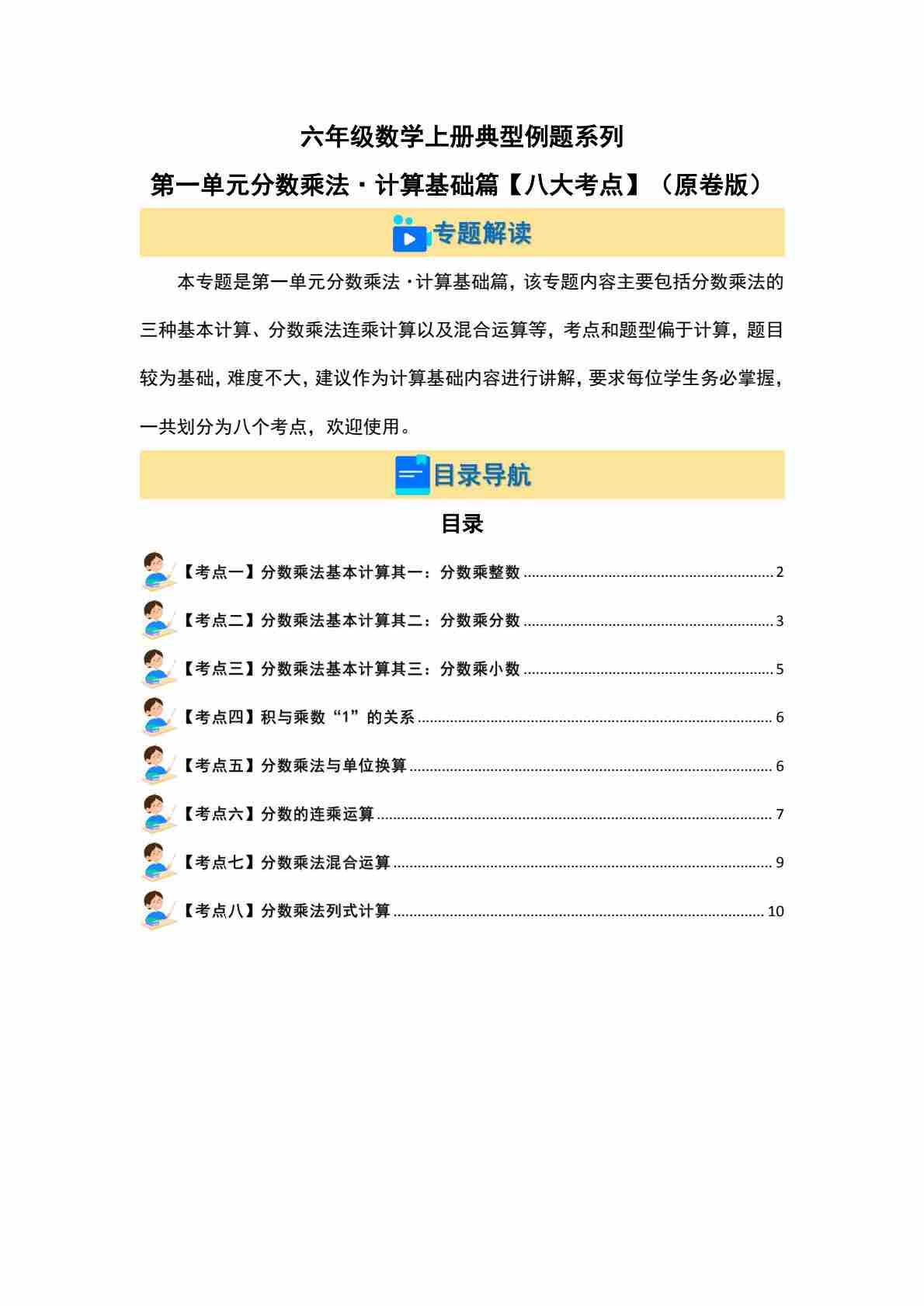 首页 > 全部 > 专项练习 > 六上人教版数学【第一单元分数乘法·计算基础篇(八大考点)典型例题系列(原卷版)】