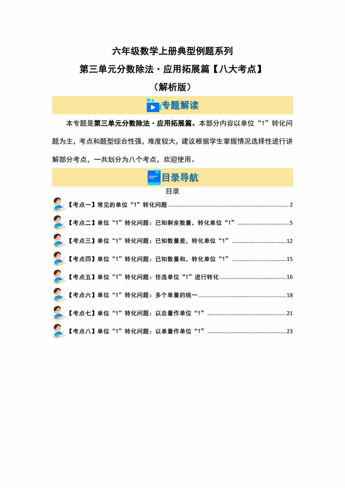 首页 > 全部 > 专项练习 > 六上人教版数学【第三单元分数除法·应用拓展篇【八大考点】典型例题系列(解析版)】