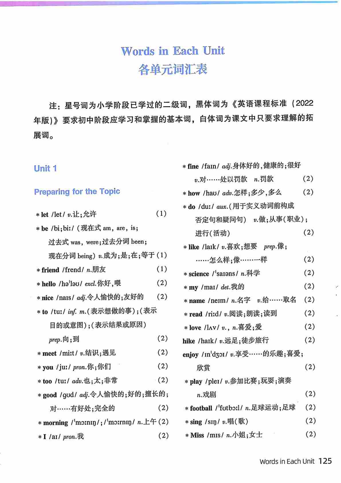 仁爱七上(2024新版)单词表 Unit 1——6