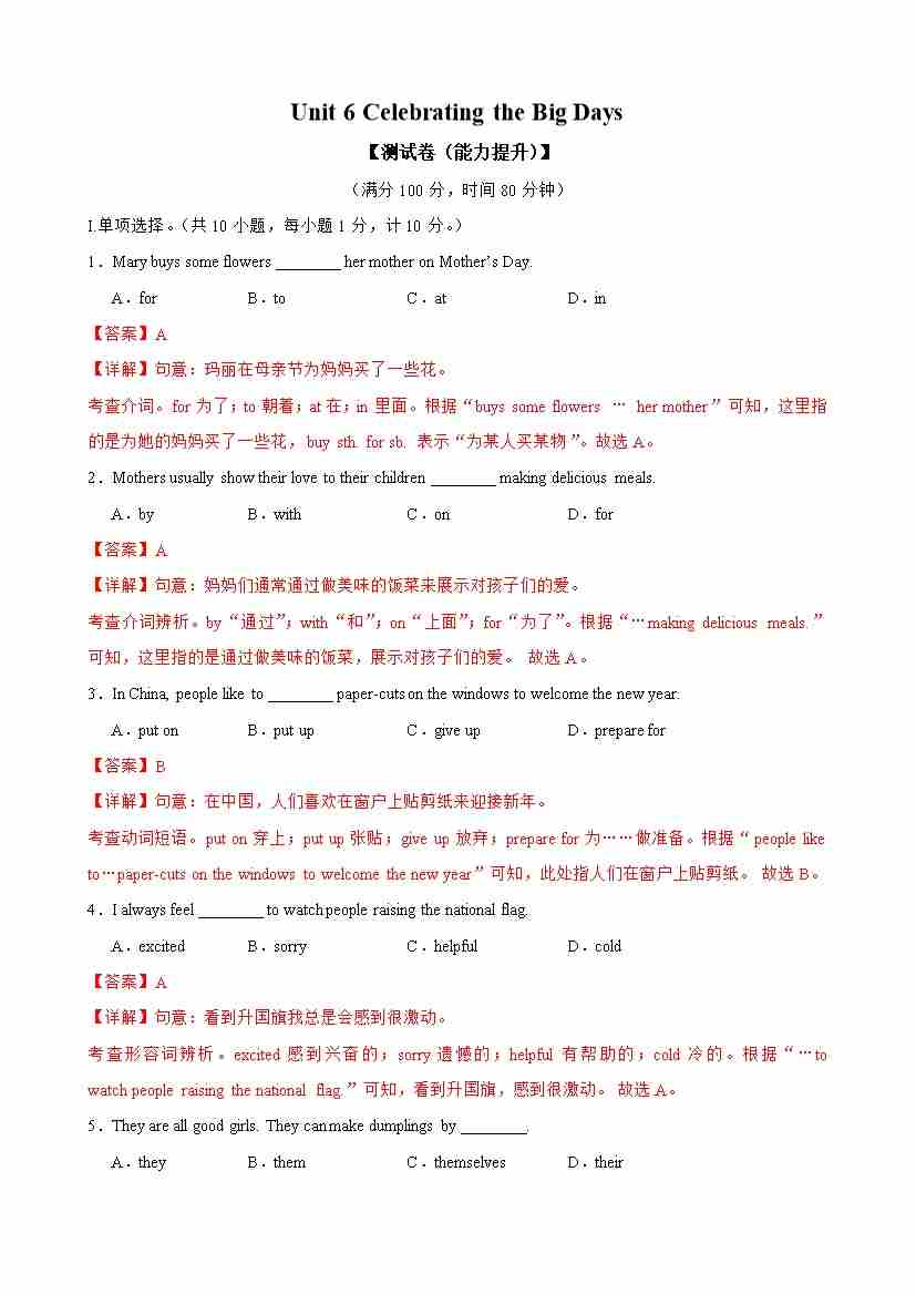Unit 6 Celebrating the Big Days(单元卷·培优提升)(解析版)