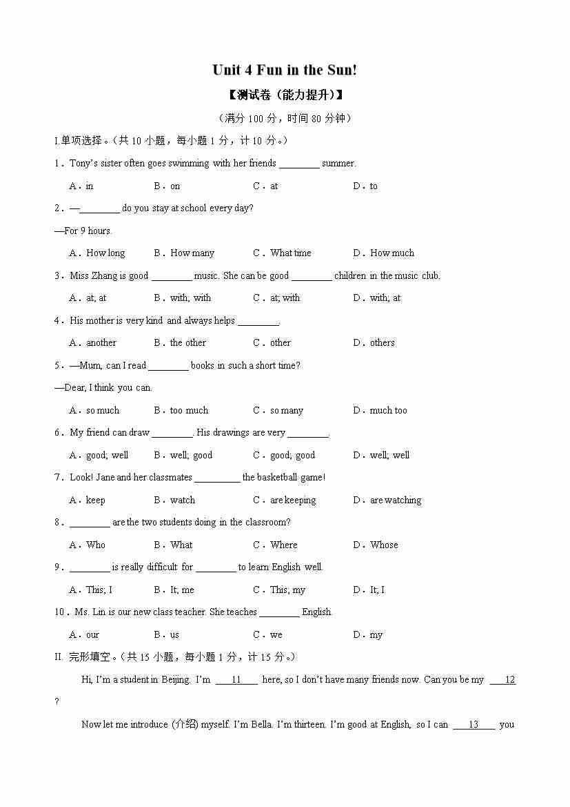 首页 > 全部 > 单元地区卷 > Unit 4 Fun in the Sun!(单元卷·培优提升)(原卷版)