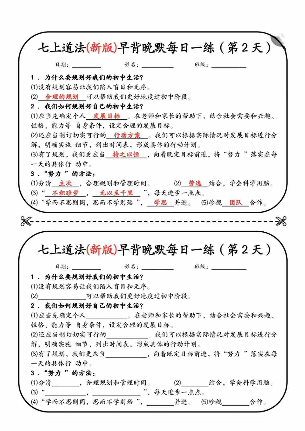 首页 > 全部 > 公众号作品 > 七上道法(新版)早背晚默每日一练(1)