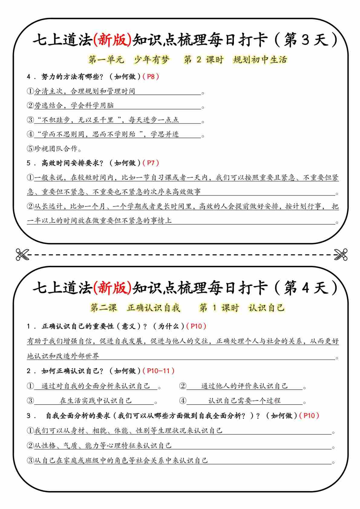 七上道法(新版)知识点梳理每日打卡【答案版】