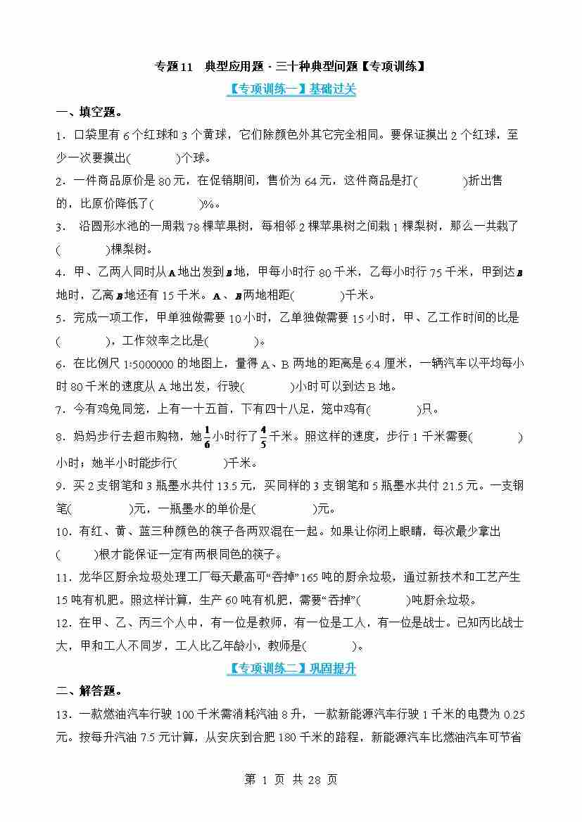 首页 > 全部 > 综合复习 > 专题11 典型应用题·三十种典型问题【专项训练】