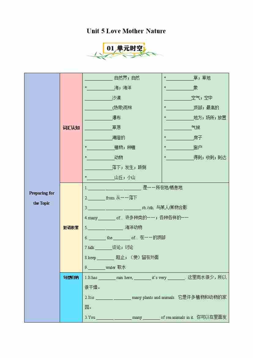 Unit 5 Love Mother Nature【速记清单】-2024-2025学年七年级英语上册单元速记•巧练(仁爱版)(原卷版)