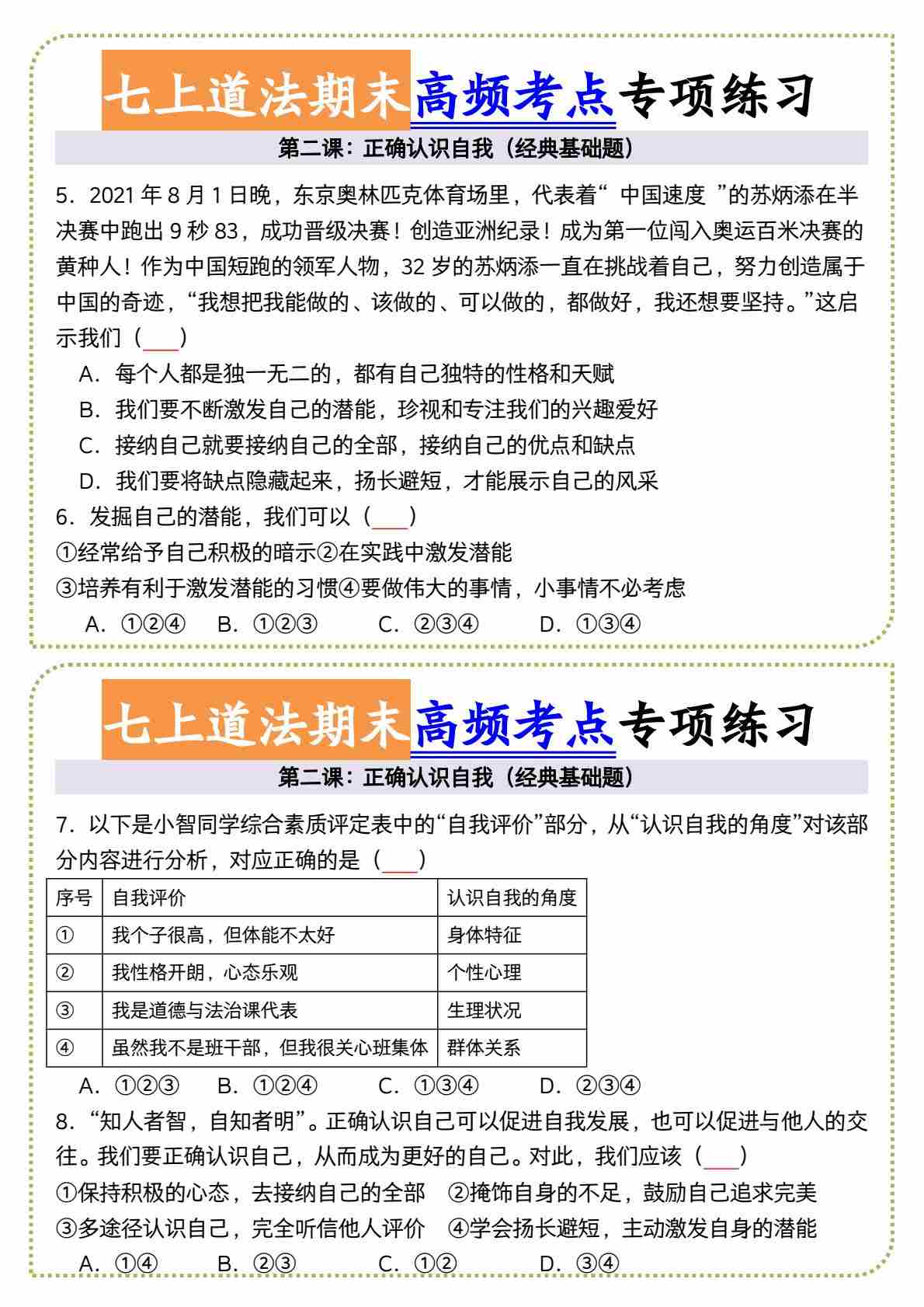 首页 > 全部 > 公众号作品 > 2七上道法期末正确认识自我高频考点小纸条