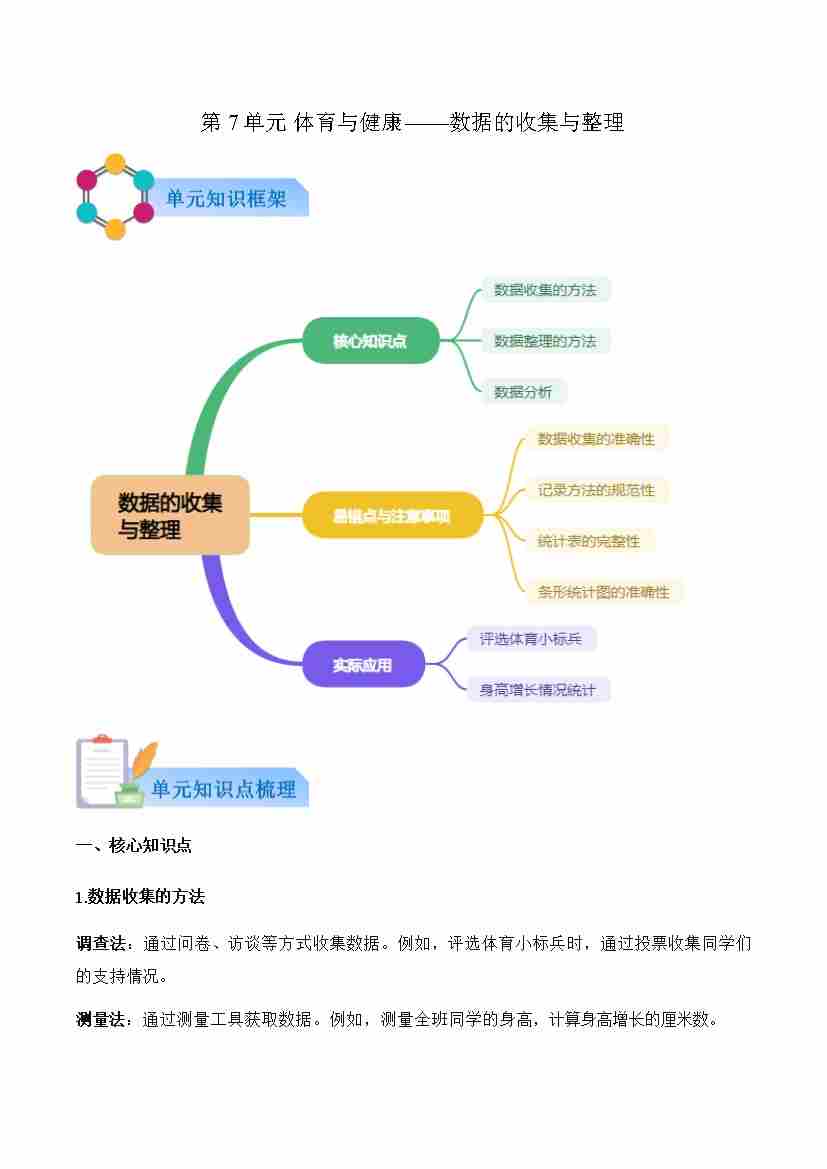 首页 > 全部 > 知识清单 > 第7单元 体育与健康——数据的收集与整理-单元复习讲义(解析版)