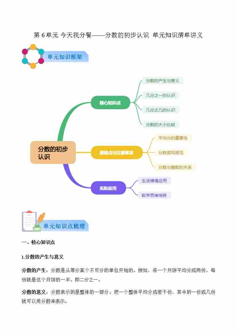 首页 > 全部 > 知识清单 > 第6单元 今天我分餐——分数的初步认识-单元复习讲义(原卷版)