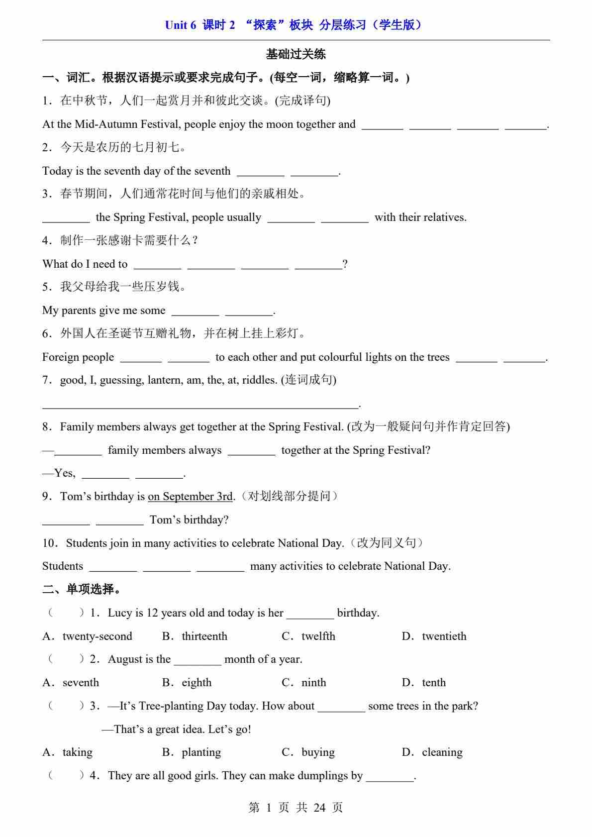 首页 > 全部 > 一课一练 > Unit 6 课时2 “探索”板块(分层练习)