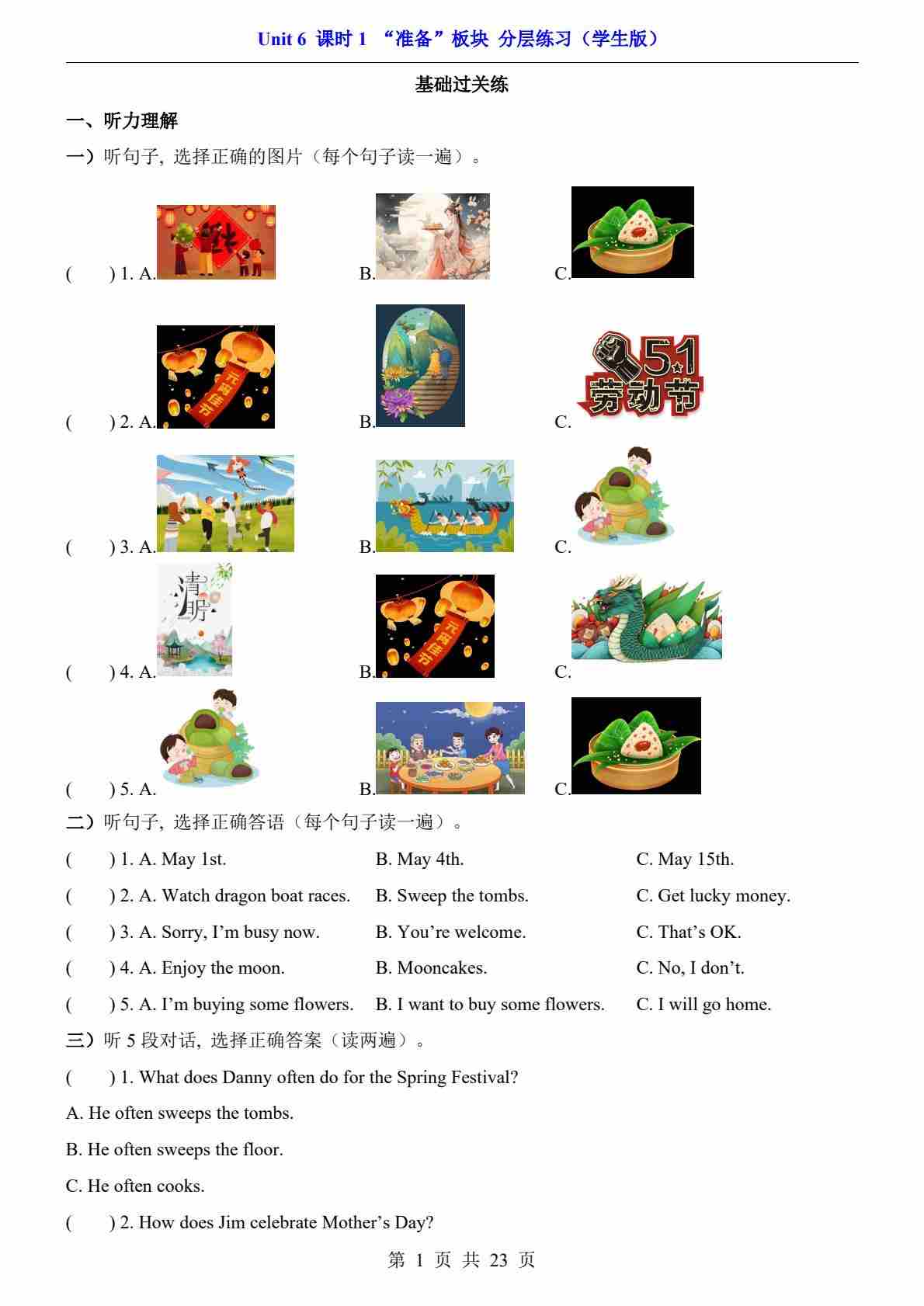 首页 > 全部 > 一课一练 > Unit 6 课时1 “准备”板块(分层练习)