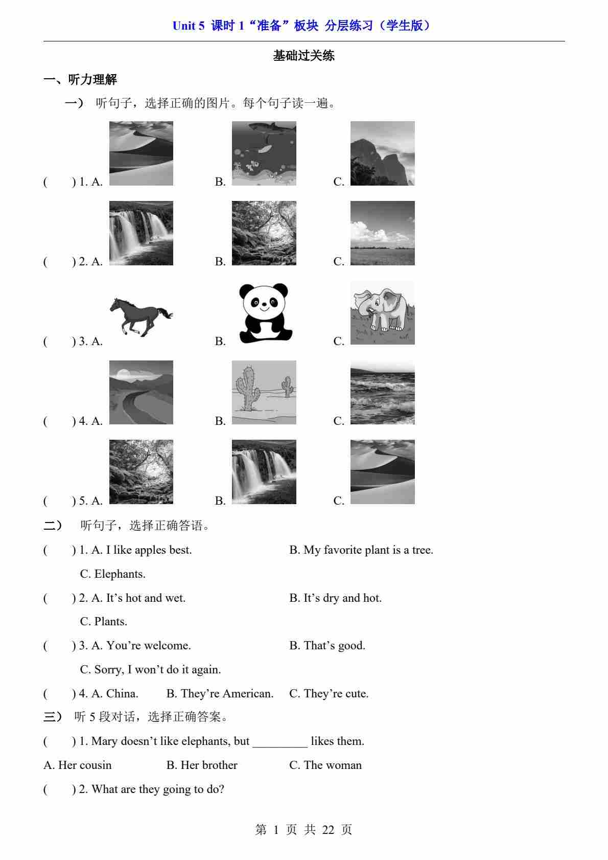 首页 > 全部 > 一课一练 > Unit 5 课时1 “准备”板块(分层练习)