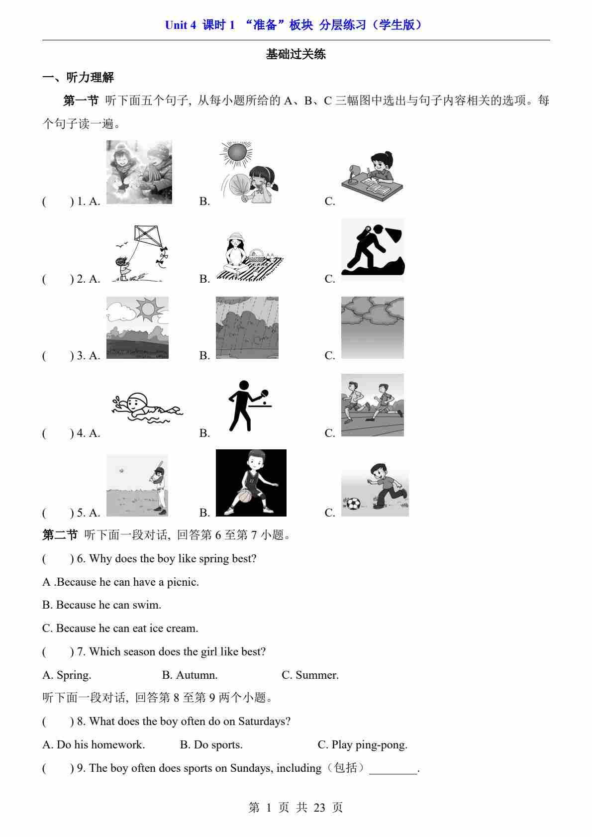 首页 > 全部 > 一课一练 > Unit 4 课时1 “准备”板块(分层练习)