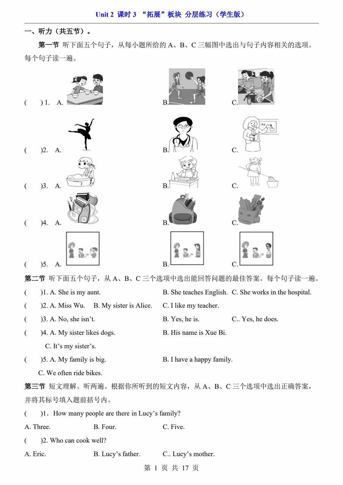 首页 > 全部 > 一课一练 > Unit 2 课时3 “拓展”板块(分层练习)