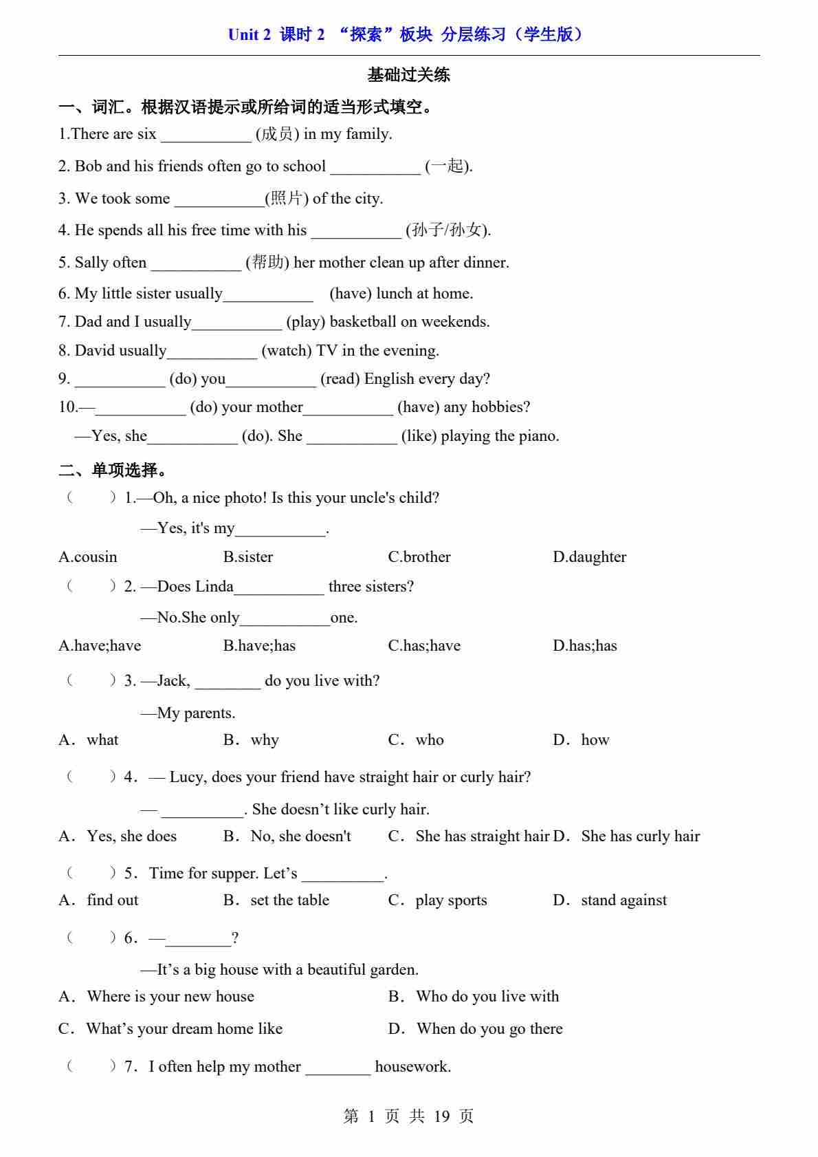 Unit 2 课时2 “探索”板块(分层练习)