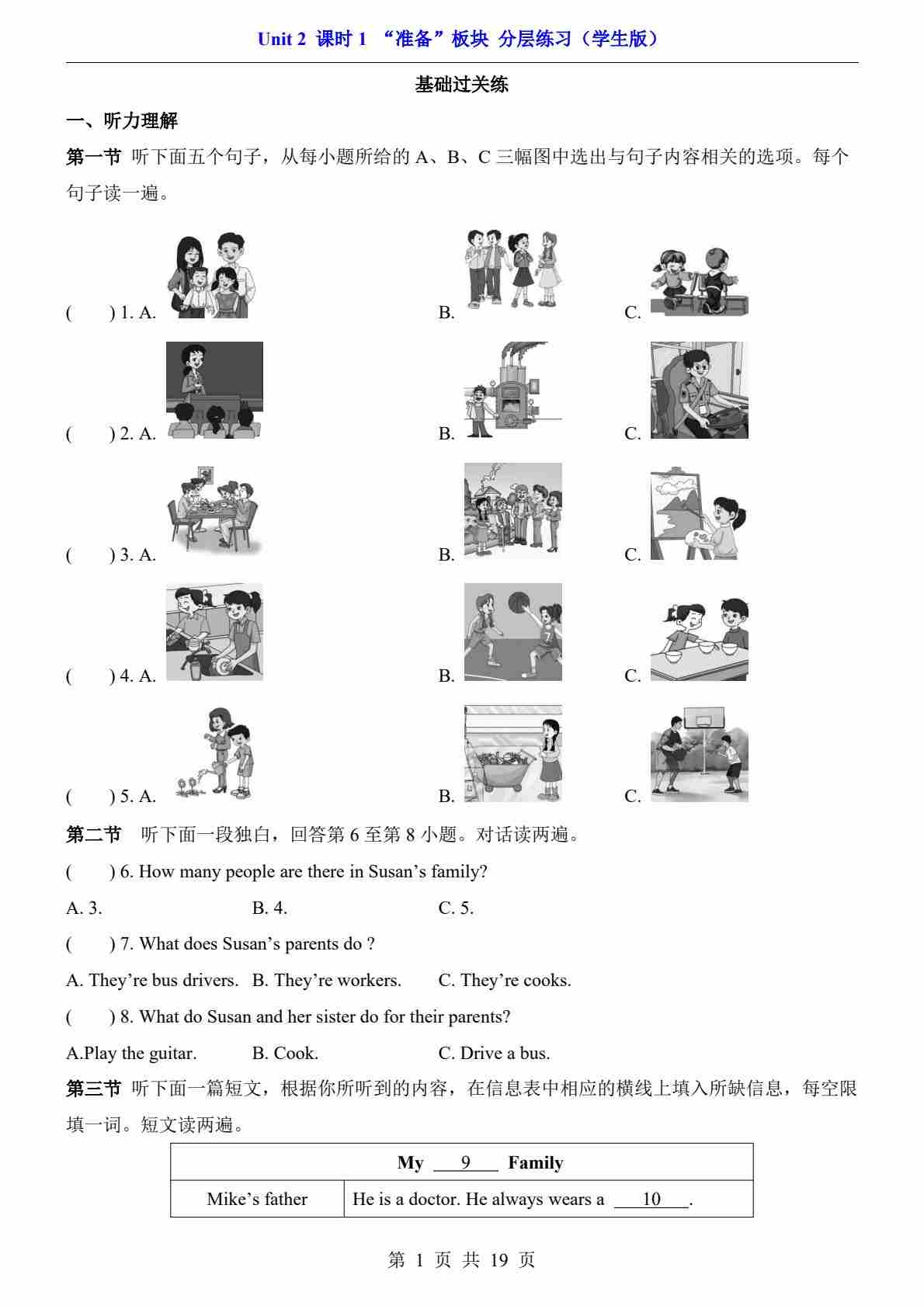 首页 > 全部 > 一课一练 > Unit 2 课时1 “准备”板块(分层练习)