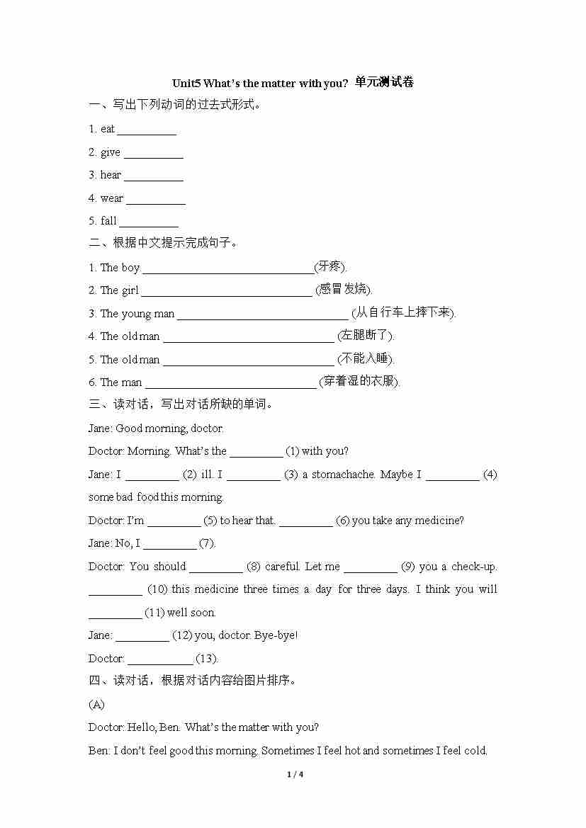 首页 > 全部 > 单元测试 > Unit5_What’s_the_matter_with_you?单元测试卷