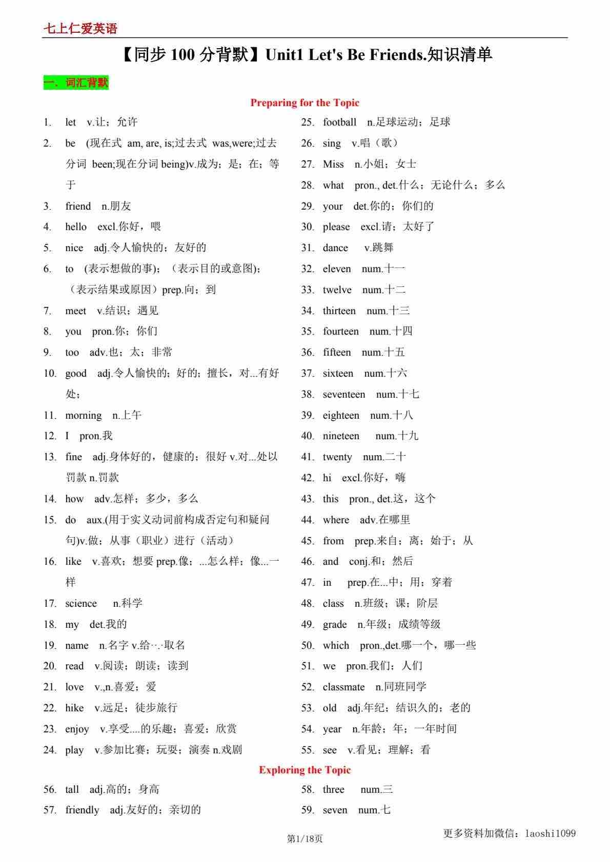 首页 > 全部 > 知识清单 > 【七上仁爱英语】Unit1 Let's Be Friends_Password_Removed