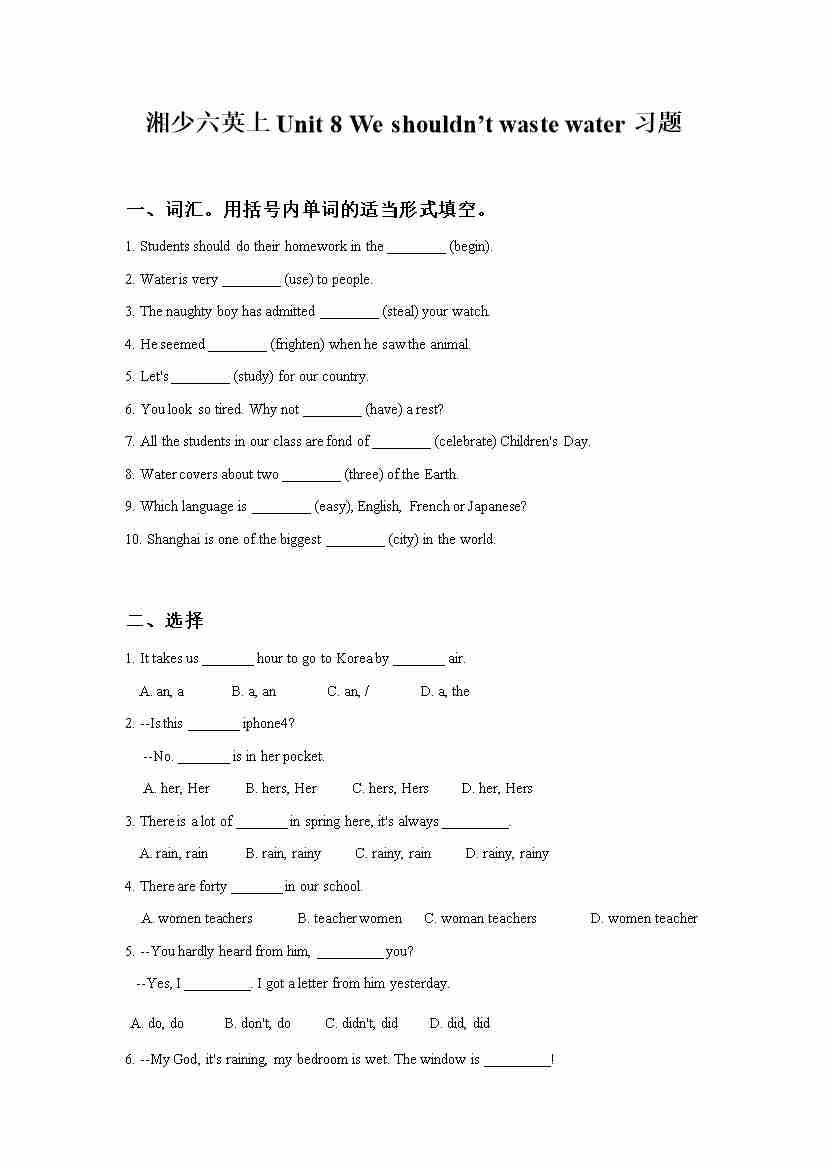 首页 > 全部 > 单元测试 > Unit 8 We shouldn't waste water 习题