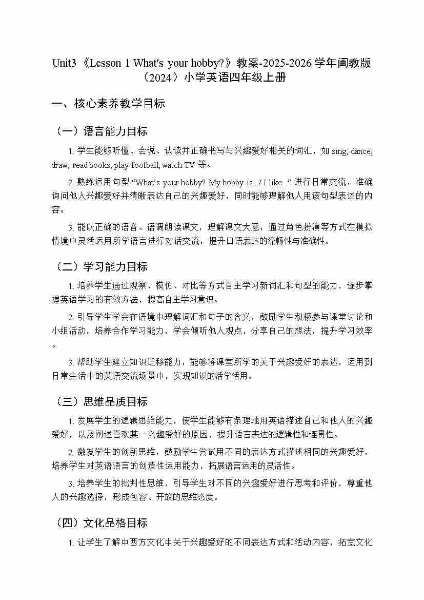 首页 > 全部 > 课件教案 > Unit3 Lesson 1 What's your hobby?(教案)