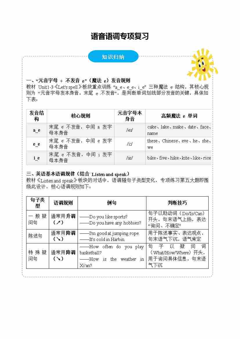 专题01 语音语调专项(期中专项训练)四年级英语上学期(人教精通版·新教材)