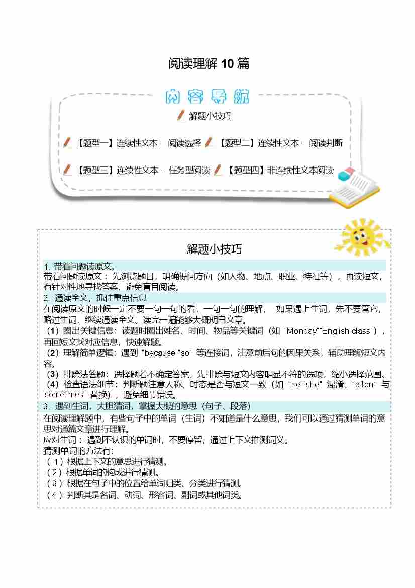 首页 > 全部 > 期中专项 > 专题08 阅读理解(期中专项训练)四年级英语上学期(人教精通版·新教材)