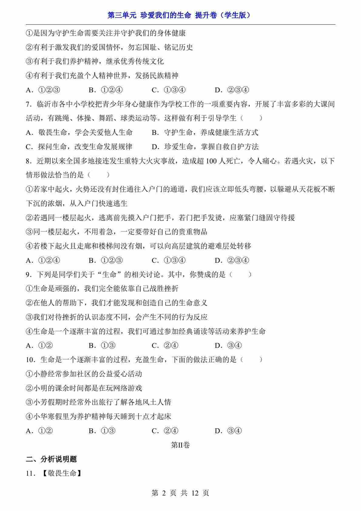 首页 > 全部 > 单元检测 > 第3单元 珍爱我们的生命(提升卷)
