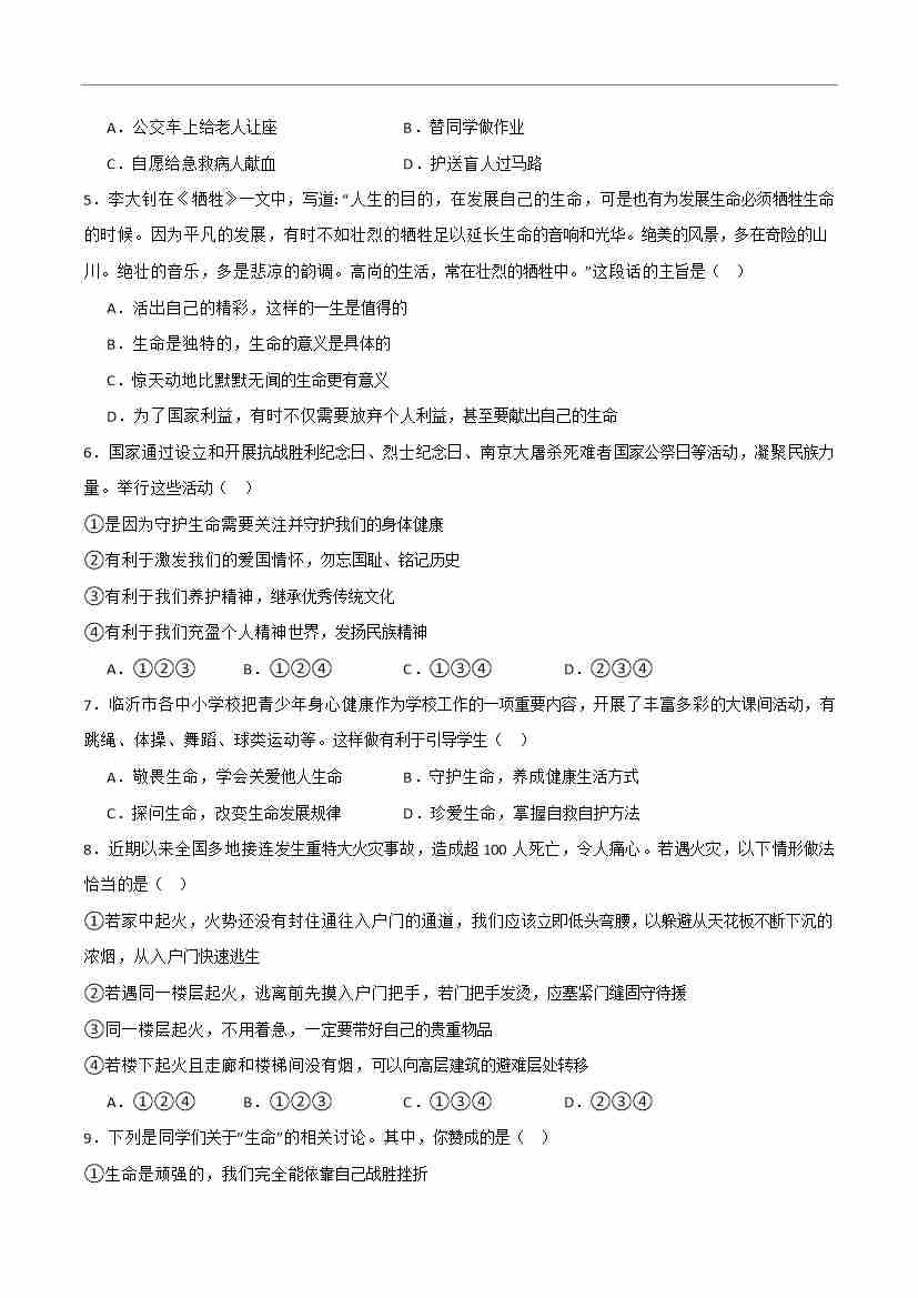 首页 > 全部 > 单元检测 > 第三单元 珍爱我们的生命 【单元测试·提升卷】 (学生版)