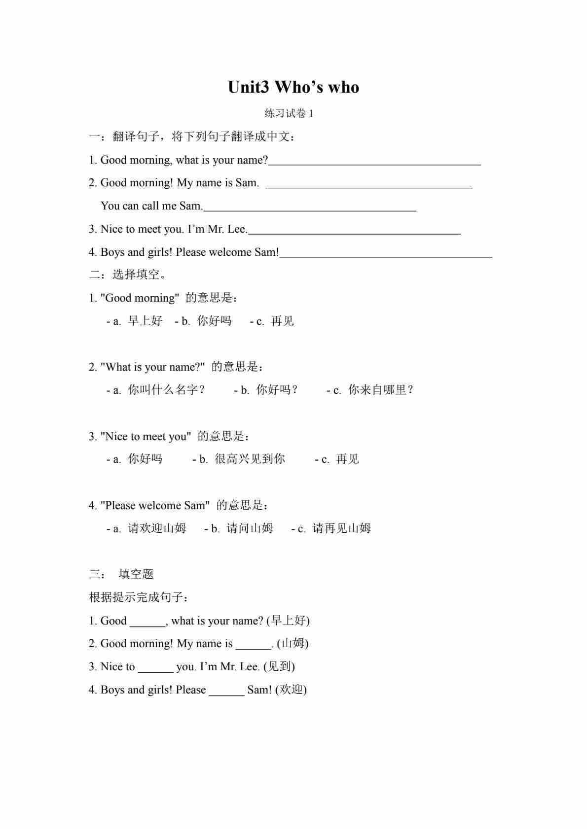 【新课标】Unit3 Who’s who预习单1