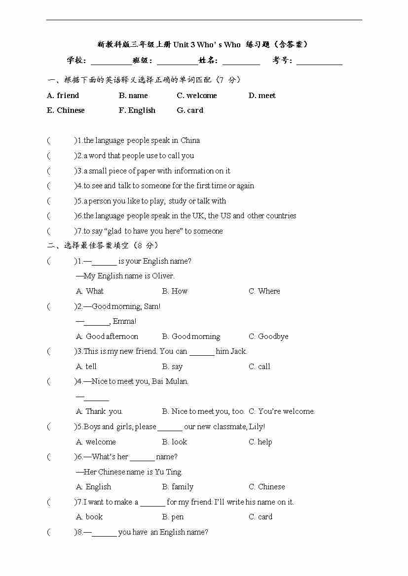首页 > 全部 > 同步测试 > Unit 3 Who's Who 练习题(含答案)