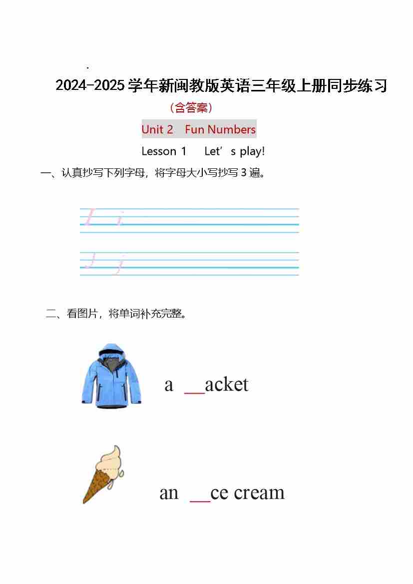 首页 > 全部 > 同步练习 > Unit 2 Fun Numbers Lesson 1 Let’s play!(同步练)-2024-2025学年闽教版(2024)英语三年级上册