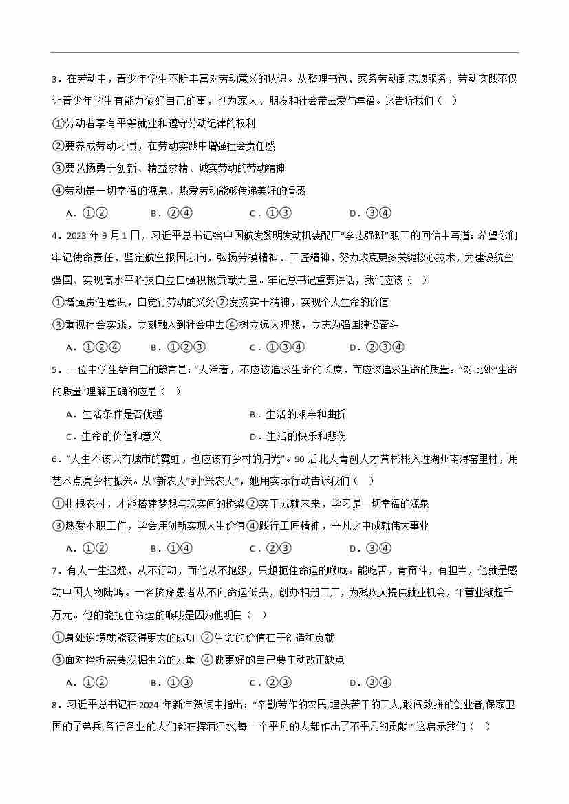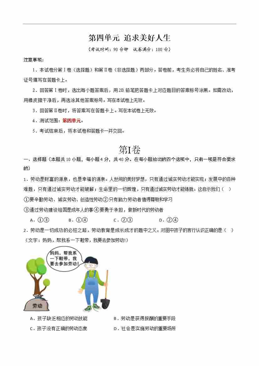 首页 > 全部 > 单元检测 > 第四单元 追求美好人生 【单元测试·提升卷】 (学生版)