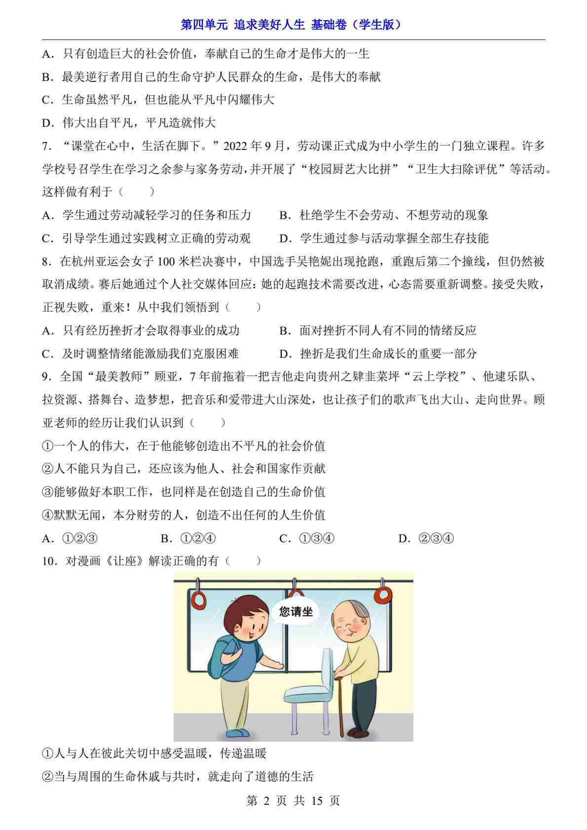 首页 > 全部 > 单元检测 > 第4单元 追求美好人生(基础卷)