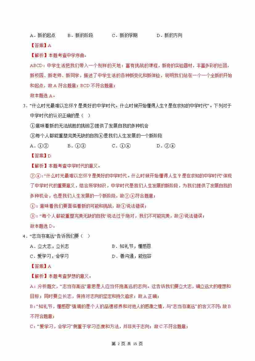 首页 > 全部 > 第一次月考 > 七年级道德与法治第一次月考卷01(全解全析)(统编版2024)