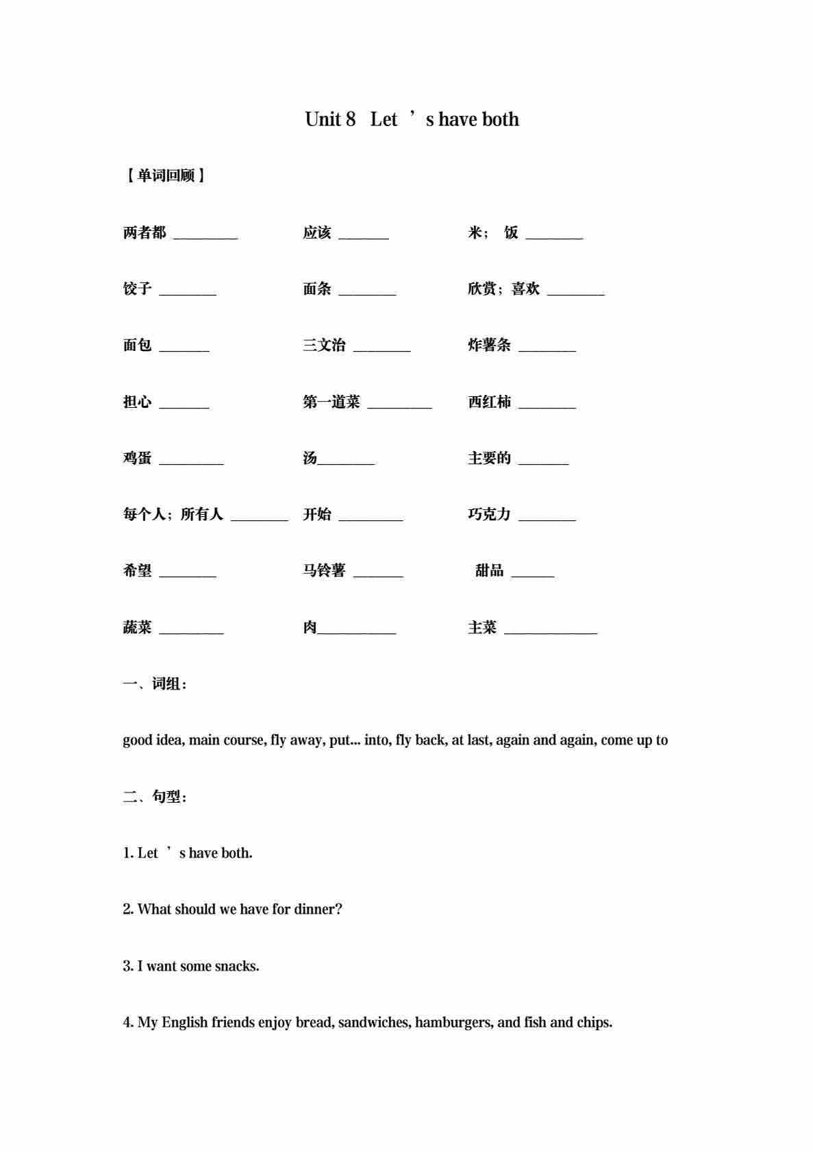 五年级(上)英语 Unit8 Let’shaveboth 基础练习