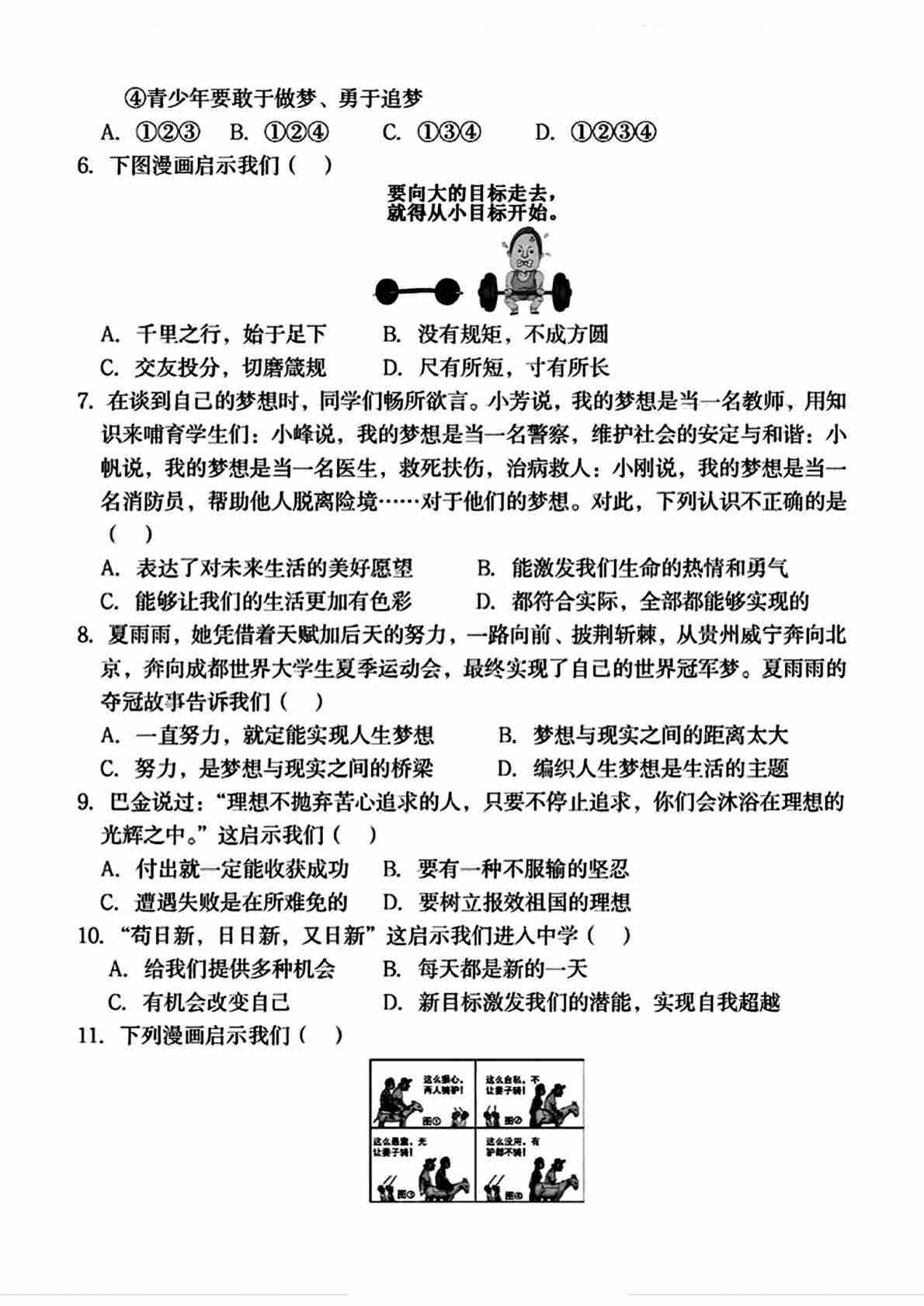 首页 > 全部 > 第一次月考 > 七上道德与法治第一次月考试卷(1)