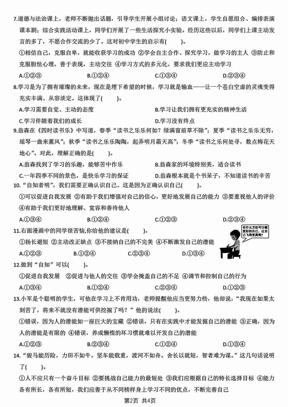首页 > 全部 > 第一次月考 > 2024学年七年级上册道德与法治第一次月考卷