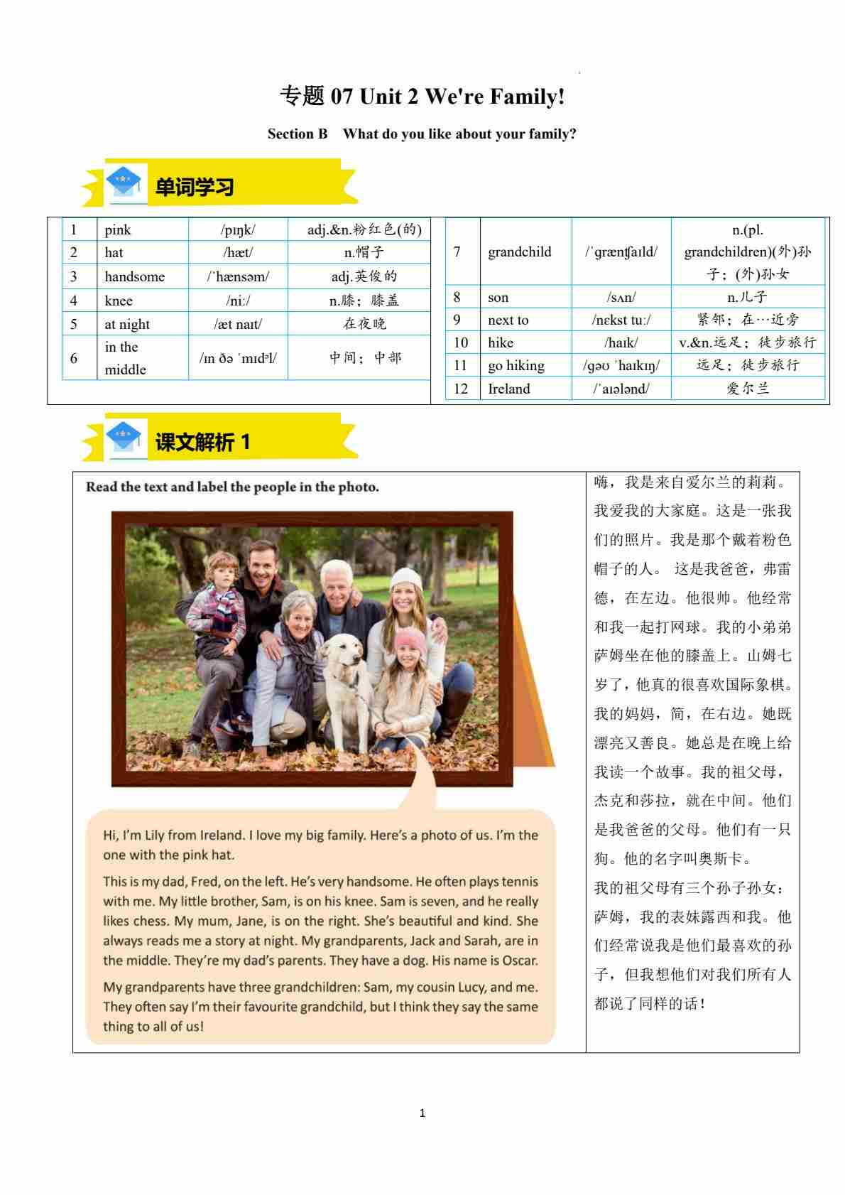 专题07 Unit 2 We're Family! Section B (原卷版)