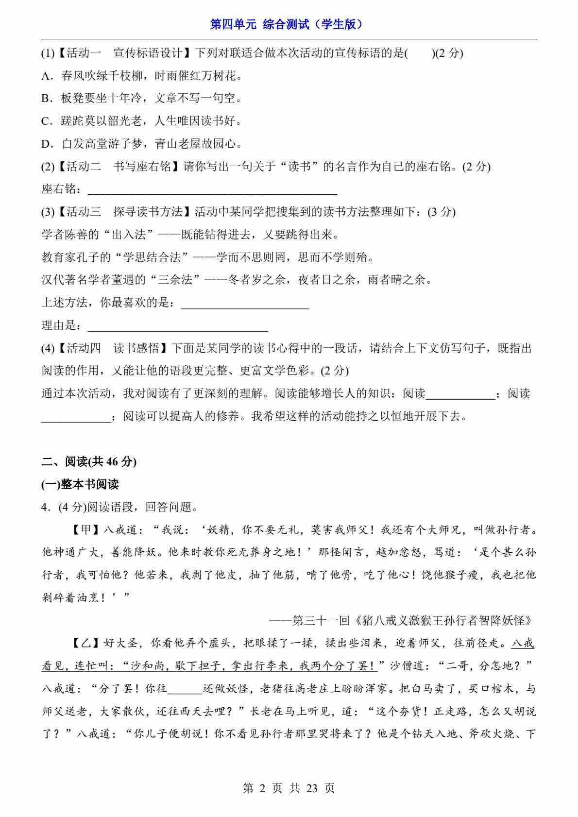 第4单元(综合测试)