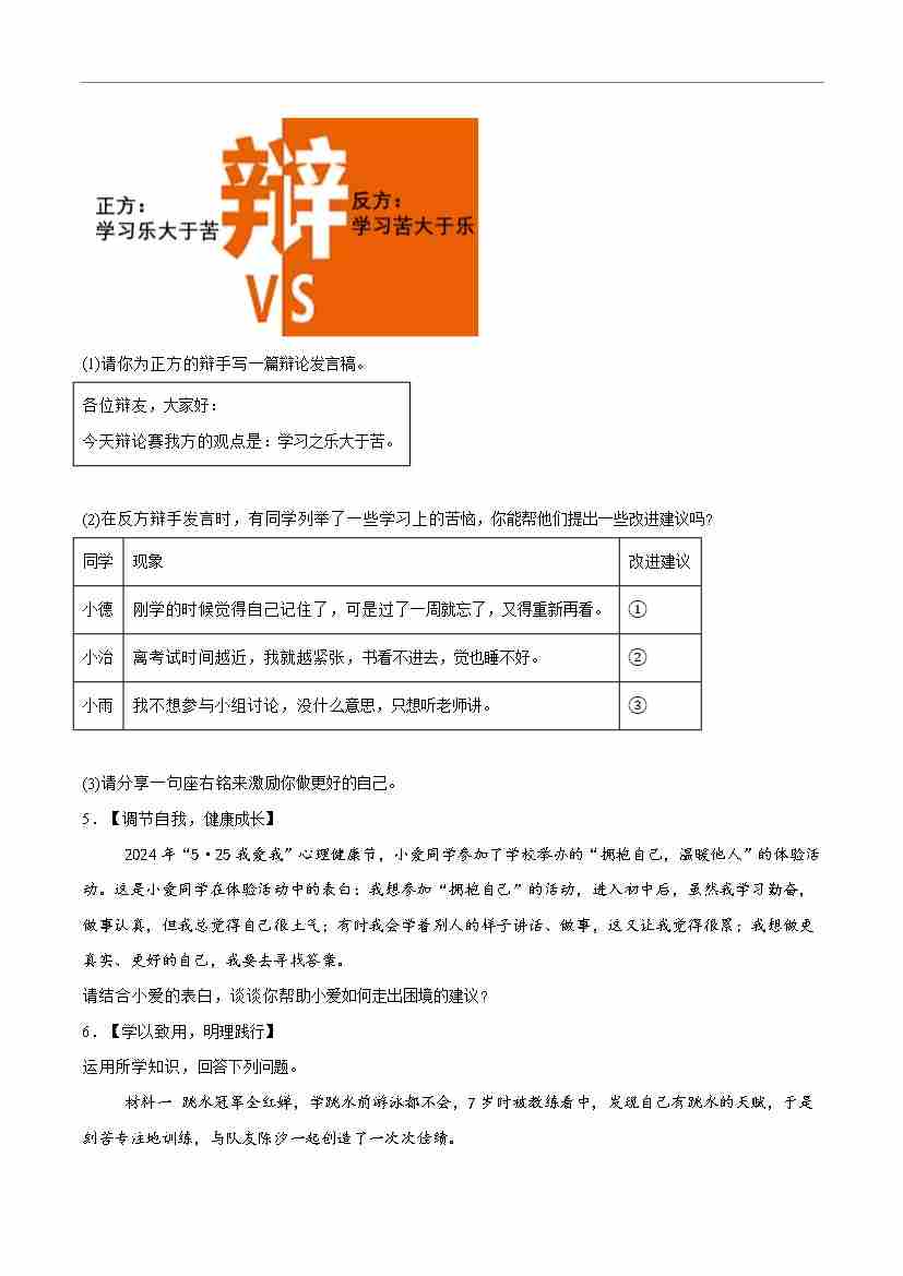 首页 > 全部 > 期末专项 > 专题02 正确认识自我(高频非选择题20题)(原卷版)