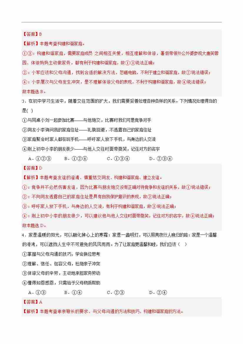 首页 > 全部 > 期末专项 > 专题04 幸福和睦的家庭(高频选择题40题)(解析版)