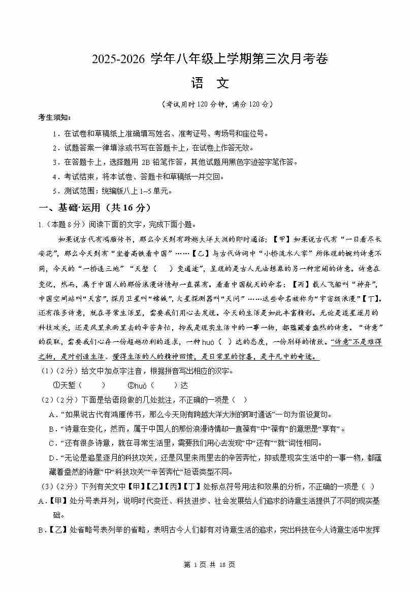 首页 > 全部 > 月考试卷 > 2025八上语文第三次月考卷·重难突破卷(全解全析)(新教材统编版)