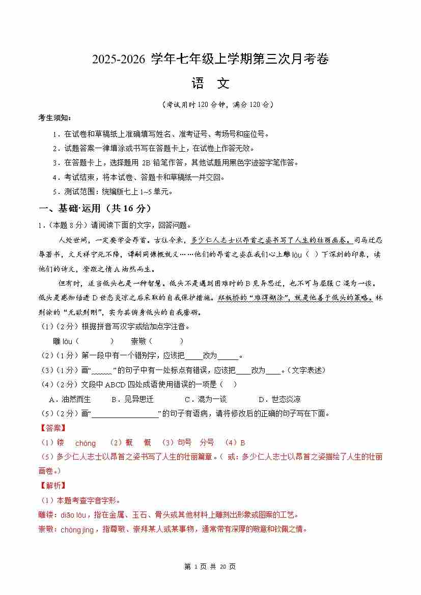 首页 > 全部 > 月考试卷 > 2025七上语文第三次月考卷·重难突破卷(全解全析)(新教材统编版)
