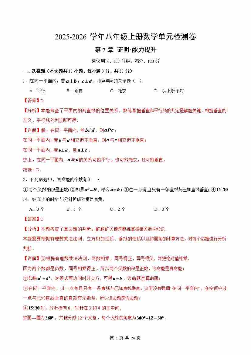 首页 > 全部 > 单元提升卷 > 第7章 证明测试·培优卷(解析版)