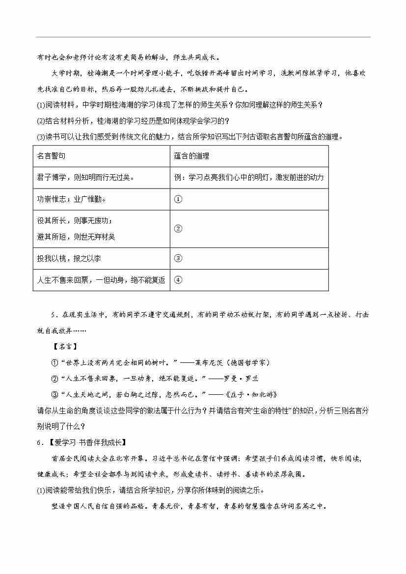 首页 > 全部 > 期末专项 > 专题08 生命可贵(高频非选择题20题)(学生版)