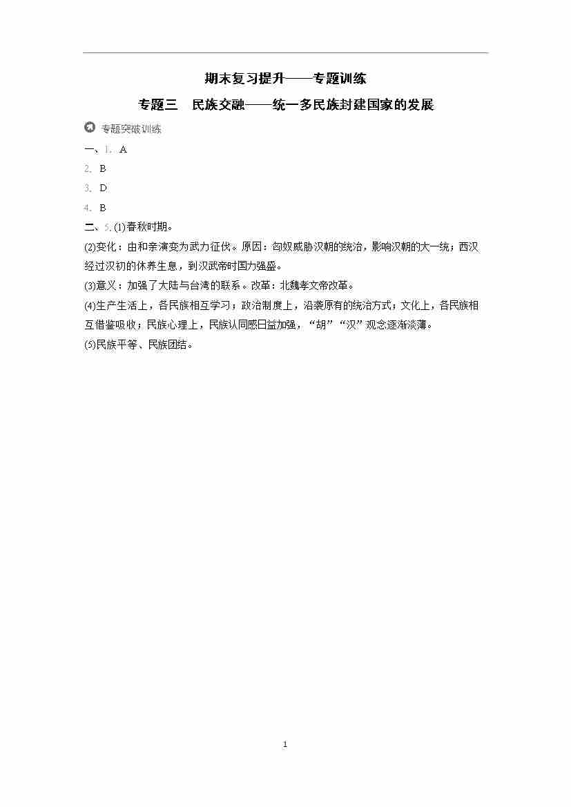 专题训练 专题三 民族交融——统一多民族封建国家的发展