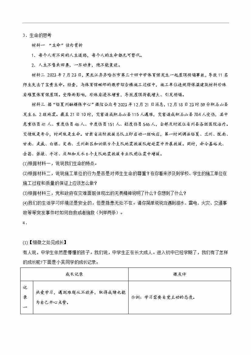 首页 > 全部 > 期末专项 > 专题09 守护生命安全(高频非选择题20题)(学生版)