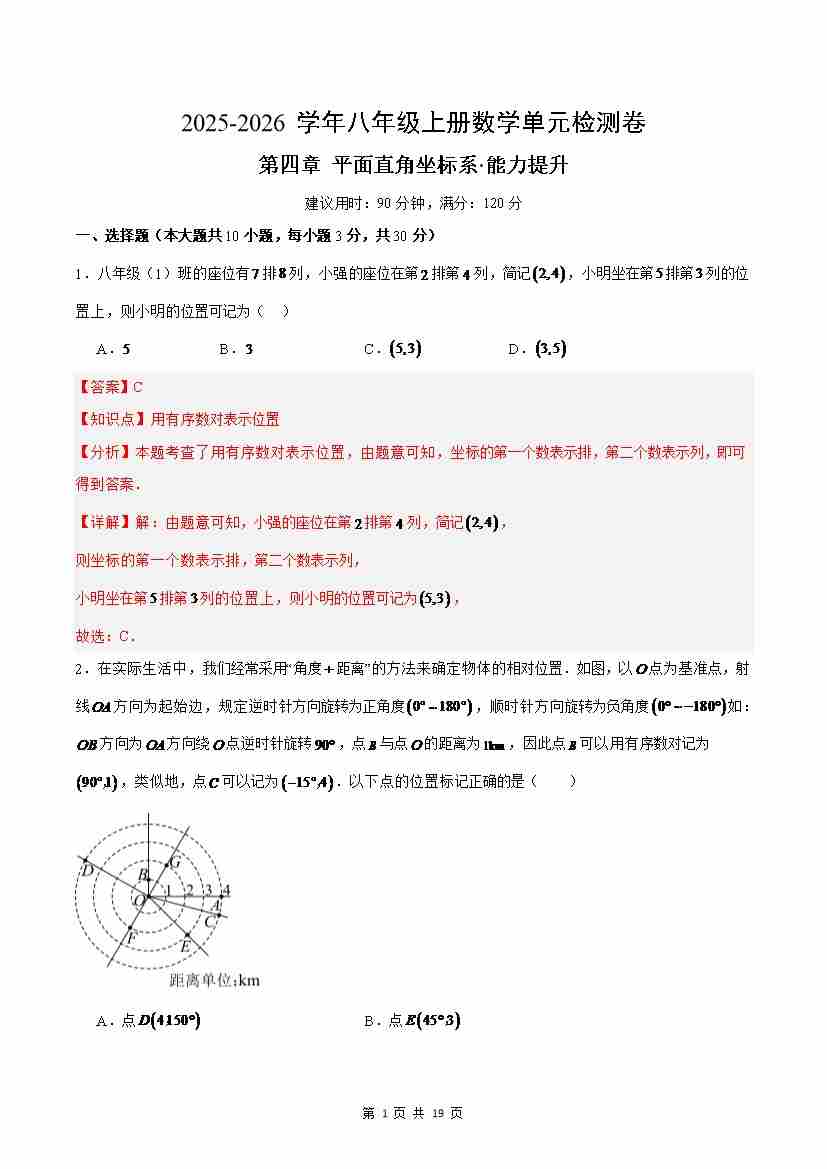 首页 > 全部 > 单元提升卷 > 八上数学第4章 平面直角坐标系测试·提升卷(解析版)