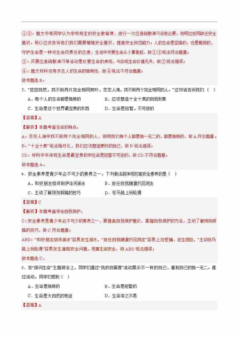 首页 > 全部 > 期末专项 > 专题09 守护生命安全(高频选择题40题)(解析版)